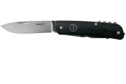 Las navajas Böker Plus Tech-Tool recuerdan a las clásicas navajas suizas. En lugar de los tradicionales mangos rojos de plástico, estos nuevos cuchillos están hechos de G10. La hoja está hecha de acero Sandvik 12c27, que es un acero inoxidable desarrollado específicamente para cuchillos. La hoja está afilada en hueco, lo que significa que es muy fina justo por encima del filo. Esto mejora mucho las cualidades de corte. No tiene un bloqueo real, pero la cerradura slipjoint mantiene la hoja en posición abierta bien colocada. El clip de bolsillo se encuentra en el lado derecho y puede colocarse tanto con la punta hacia arriba como hacia abajo. La parte posterior del mango tiene un rompe cristales sólido.