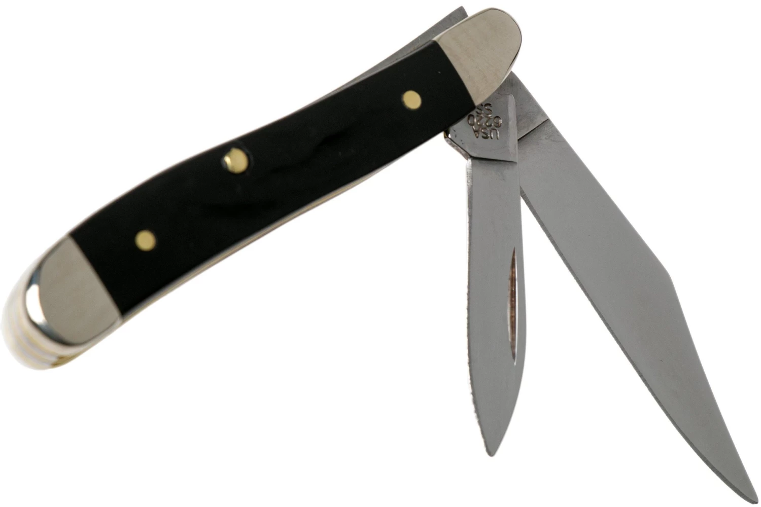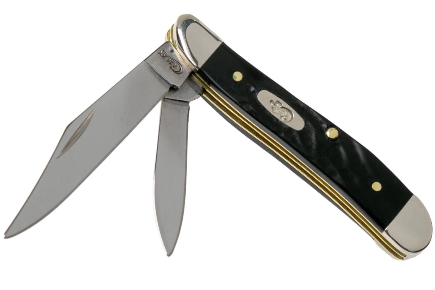 La Case Peanut es una navaja tradicional con la clásica forma de cacahuete. Este modelo toma su nombre de la forma del mango: que, con un poco de imaginación, se asemeja a la piel de un cacahuete. Es una navaja bastante pequeña con dos hojas: una principal con punta clip-point y una secundaria con forma de bolígrafo. Ambas hojas tienen una punta ligeramente diferente. Puedes utilizarlas para diferentes tareas, o puede cambiar las hojas cuando una de ellas esté deshuesada. Ambas están sujetas por un slipjoint cuando se abren.