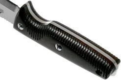El EKA Nordic W12 está pensado como un cuchillo de supervivencia y de caza polivalente que nunca te defraudará. La hoja full-tang tiene un grosor de 4,1 mm y está preparada para un uso intensivo. Las estrías gruesas de la hoja proporcionan un agarre adicional. El reverso del cuchillo contiene un rompe cristales.