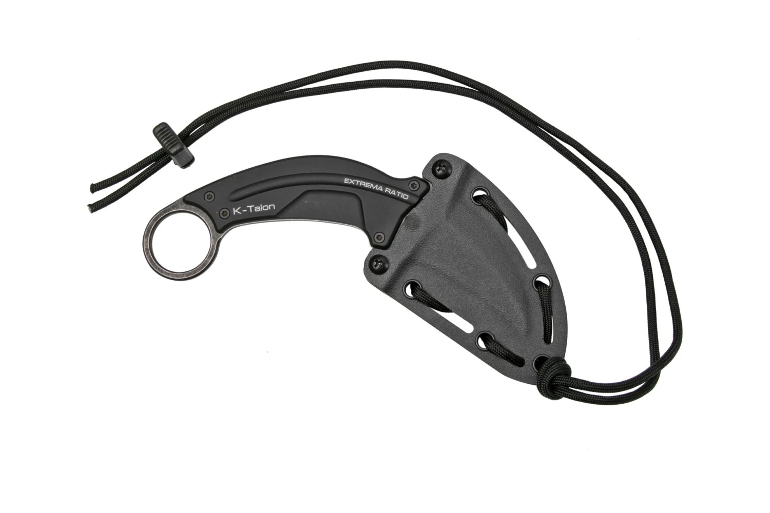 El Extrema Ratio K-Talon es un cuchillo de karambit compacto. El cuchillo es increíblemente robusto gracias a su construcción full-tang. Esto significa que la hoja y el anillo están hechos de una sola pieza de acero, en la que se montan las cachas.