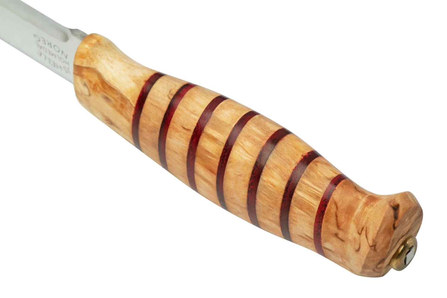El Helle JS Limited Edition 2022 es un hermoso cuchillo, diseñado por Jan Steffen Helle. Es nieto de Sigmund Helle, uno de los fundadores de la marca. Y como este año se cumplen 90 años desde que los hermanos Sigmund y Steinar construyeron su propia forja, sus nietos estaban deseosos de honrar los diseños de sus antepasados. Por ello, el cuchillo Helle JS se inspira en la primera línea de gama alta de Helle: la serie Fjellkniven. Esto significa que este JS tiene el grabado original noruego con la marca y las iniciales del fabricante. Por lo tanto, JS en la hoja significa Jan Steffen. Y la funda de cuero suministrada también es igual que las fundas que se fabricaban en el pasado. Con un hermoso patrón noruego.