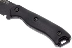 El KA-BAR Short Becker Drop Point BK16 es el resultado de la colaboración entre el diseñador de cuchillos Ethan Becker y KA-BAR. Se trata de un cuchillo polivalente muy bien diseñado. La hoja está hecha de acero carbono 1095, por lo que este cuchillo no es inoxidable. Por suerte, la hoja tiene un revestimiento negro que hace que el mantenimiento sea mucho más fácil.