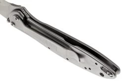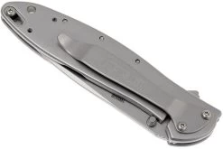 La Kershaw Leek es una navaja delgada y compacta con apertura asistida, diseñada por Ken Onion. Puede parecer un poco exagerado tener apertura asistida para una típica navaja pequeña EDC, pero es genial que no tengas que hacer mucho esfuerzo para abrirla. Puedes también cerrarla fácilmente con una sola mano. La seguridad está garantizada por el cierre framelock y el bloqueo adicional que impide que el cuchillo se abra accidentalmente. Este cierre final se desliza sobre la punta de la hoja cuando el cuchillo está cerrado. Si lo deseas, puedes eliminar fácilmente este cierre adicional. El clip de bolsillo es funcional y atractivo, y puede colocarse de dos maneras diferentes: con la punta hacia arriba y con la punta hacia abajo.