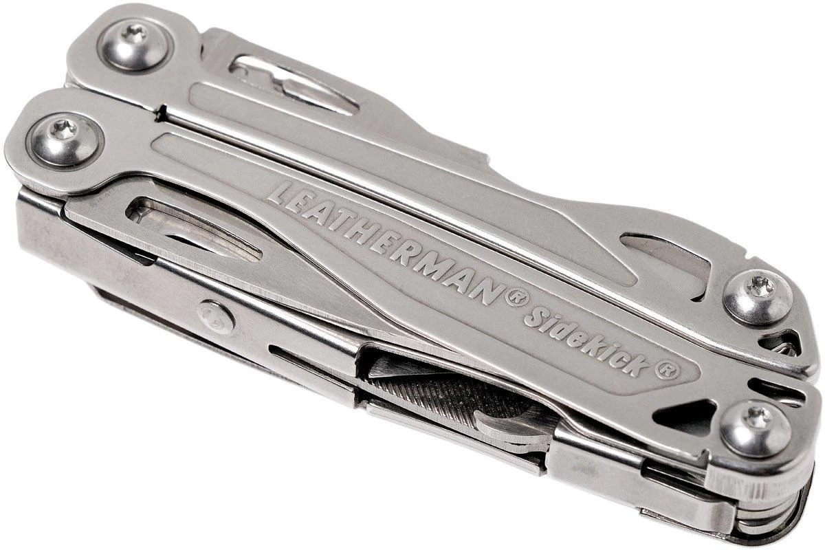 Multiherramienta con alicates y dos cuchillos. A pesar de su amplia gama de accesorios, esta multiherramienta es relativamente compacta y es cómoda de llevar en la mano o en el bolsillo. Tanto el cuchillo como la sierra pueden utilizarse con seguridad gracias a su sistema de bloqueo. La Sidekick es muy similar al modelo Leatherman Wingman. Esta multiherramienta tiene tijeras en lugar de una sierra. Además del cuchillo de filo liso y la sierra, el Sidekick cuenta con un corto cuchillo dentado.