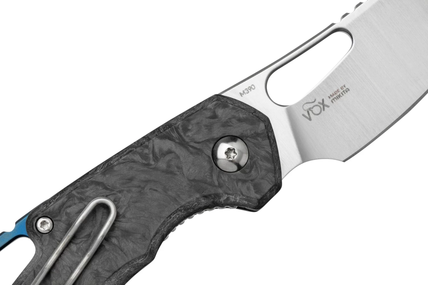 El MKM Isonzo Cleaver Marble Carbon Fiber es un cuchillo sólido, diseñado por Jesper Voxnaes y producido por Fox knives, en colaboración con Mikita. Se puede ver claramente el estilo de diseño de Voxnaes. Las líneas fluidas, el orificio para el pulgar en forma de cometa y el llamativo backspacer con orificio para el acollador son excelentes ejemplos. El orificio para el acollador es extra grande para asegurar que se pueda fijar fácilmente el cuchillo a un mosquetón. Por ello, la navaja no sólo es perfecta para llevarla a diario, sino también para los entusiastas de las actividades al aire libre y los montañeros que quieran acoplar una navaja a su equipo. Debido a su tamaño, la Isonzo también es perfecta como cuchillo de reserva o en todos aquellos lugares en los que no se quiere llamar demasiado la atención.