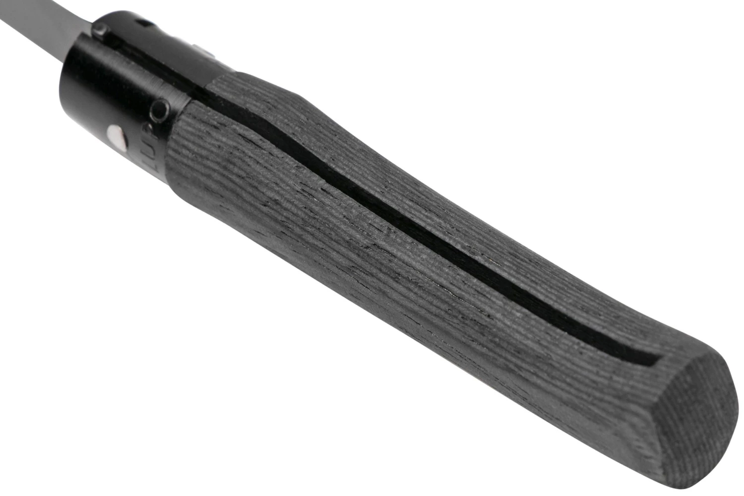 La Old Bear Classical Total Black S es una navaja clásica de Italia. La hoja se abre fácilmente con la uña. Lo haces con las dos manos. Por ello, el cuchillo puede llevarse legalmente en casi toda Europa. El cuchillo se bloquea tanto cuando está abierto como cuando está cerrado. Es el resultado de un mecanismo Lupo-lock, un bloqueo de anillo que hemos visto en marcas de cuchillos similares pero que puede ser controlado con una sola mano.