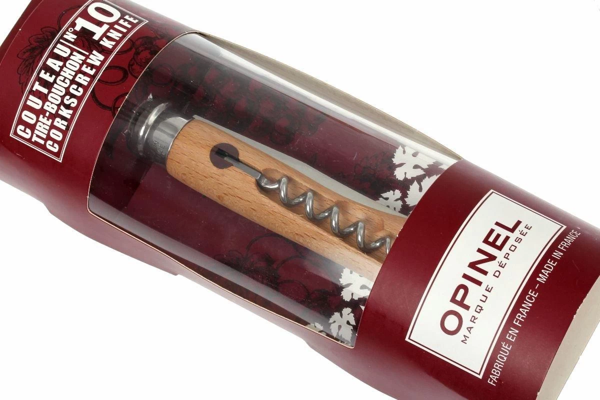 La navaja Opinel con mango de madera. Creada originalmente por Joseph Opinel en 1890 para uso de los agricultores. La navaja Opinel es una famosa navaja muy asequible para el uso diario. Puedes encontrar versiones muy pequeñas o bastante grandes. Para los agricultores franceses sólo hay una cosa más importante que una buena navaja: un sacacorchos. Por eso Opinel ha equipado esta navaja con un excelente sacacorchos. Un clic claramente audible te informa de si está totalmente abierto o cerrado.