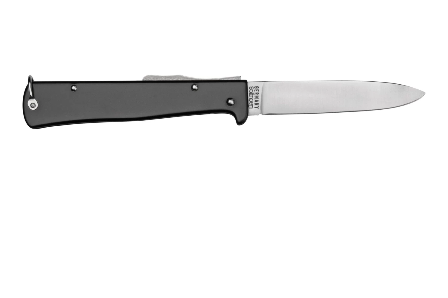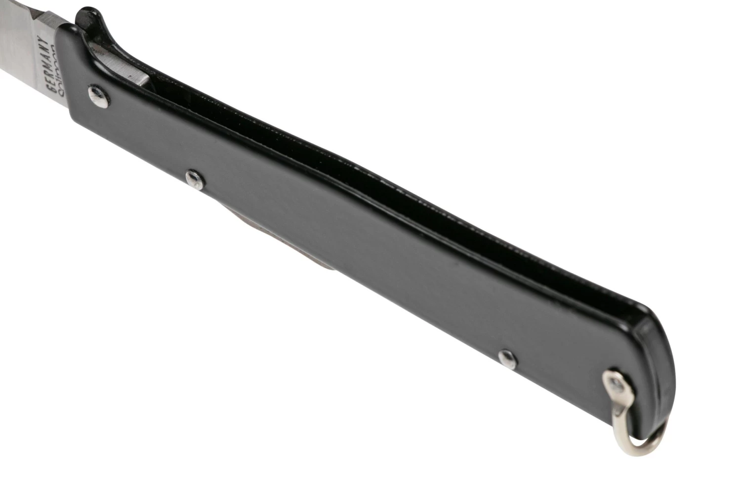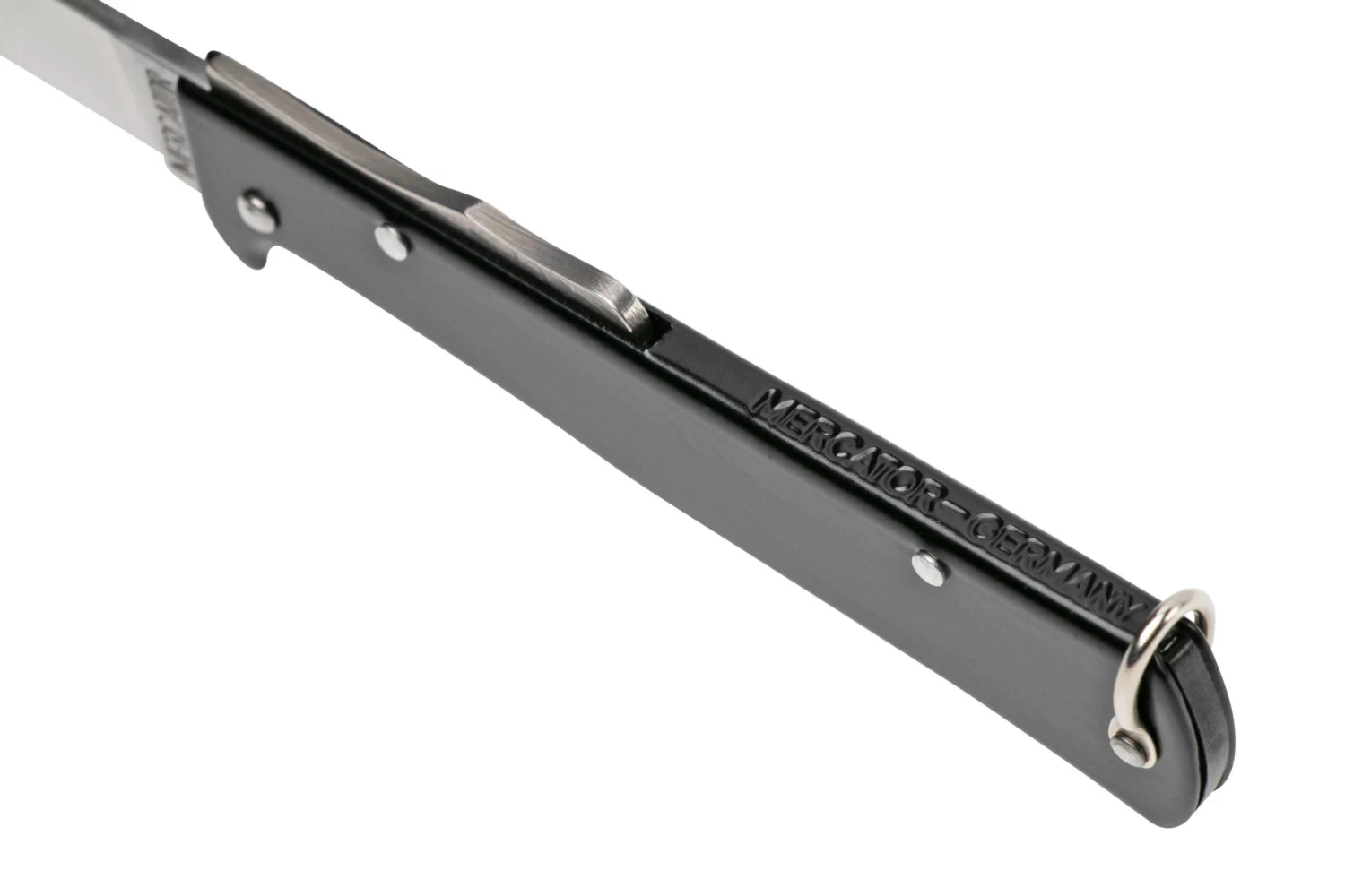 La Otter Mercator 10-426 RG es una navaja de gran tamaño. El mango es de acero inoxidable, la hoja de acero al carbono C75. Esta Mercator no está mejorada con un clip de bolsillo. El gancho del acollador permite añadir fácilmente un cordón.