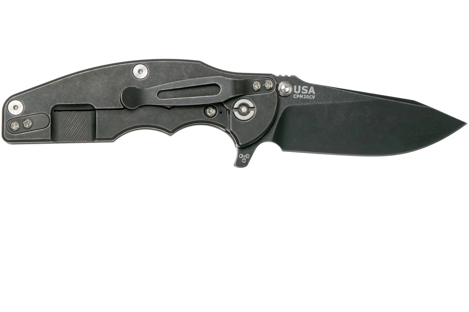Rick Hinderer Jurassic Slicer Battle Black, Black G10 CPM 20CV Navaja