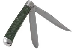 La Rough Ryder Sowbelly Trapper es una navaja tradicional. Como el nombre ya sugiere, es, en la base, un trapper con hojas clippoint y speypoint a juego. Pero la forma del mango es más curvada, como una barriga de cerdo. Este cuchillo se abre con las dos manos y el slipjoint evita el cierre accidental. Como tal, puedes llevar esta navaja legalmente en muchos lugares de Europa.