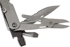 La SOG Powerlock S60 es una multiherramienta muy completa con 18 herramientas. La bisagra de los alicates está dentada para que puedas hacer más fuerza con estos. SOG ha llamado a esto Compound Leverage (Apalancamiento Compuesto). El destornillador de 1/4″ de esta herramienta es muy práctico porque se puede utilizar la conexión de 1/4″ en las tapas de las llaves.