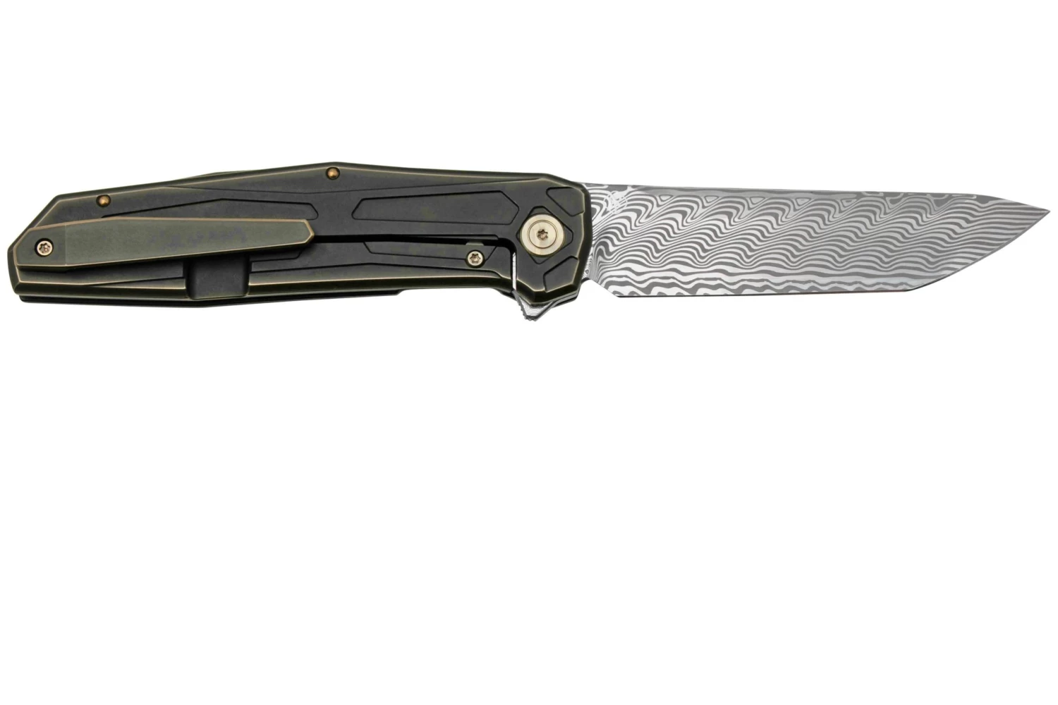 WE Knife Shadowfire WE22035 Bronze And Black Titanium, Hakkapella Damaststeel, Navaja, Diseño De Rafal Brzeski